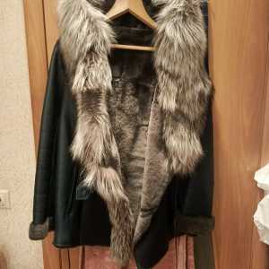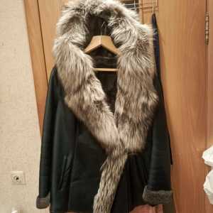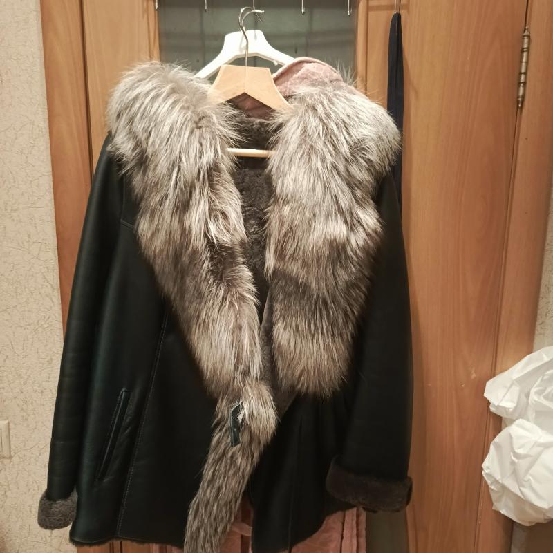 Продаю дубленку новую 54-56раз изумруд , отделка мех чернобурки , с капюшоном